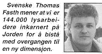 Vi tok en prat med Thomas Fasth som er allmenpraktiserende lege, foredragsholder og skandinavisk utgiver av en del av de mest sentrale bøkene som beskriver dette, inkludert Eric Kleins Krystalltrappen (Crystal Stair) med kanaliserte meldinger fra oppstegne mestere. Boken blir i disse dager utgitt på norsk. Disse bøkene er så oppsiktsvekkende at vi i utgangspunktet må klargjøre overfor Fasth at vi er temmelig skeptiske.
